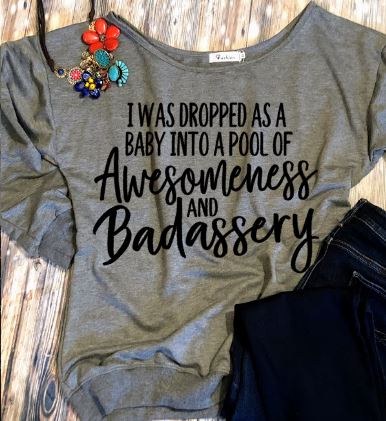 If you agree, this tee is for you. Available in black (white and gold wording) and white tee (black wording), off the shoulder sweatshirt (blue with white wording and grey with black wording). Additional tee colors available upon request.